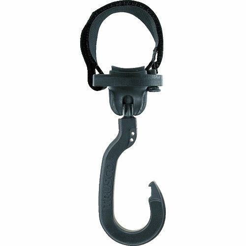 TRUSCO ベルトで止めるフック 自在式フック 27cmベルト付き 小 の特長 縦吊りが可能です。縦横方向に180度回転します。フックにすべり止めが付いているので横にズレません。ベルトで長さ調整をしてパイプなどに取り付けることができるフックです。
