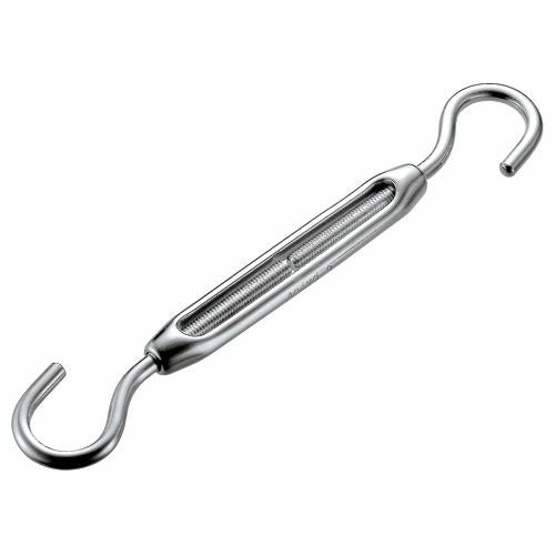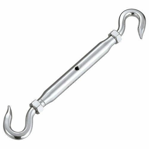 ターンバックルの連結部分が両フック、片フックの商品です。フック形状になっているターンバックルはハッカーとも呼ばれていて、どちらの連結もハッカーの場合、両ハッカーになります。枠(本体)を回転させ締めたり緩めたりすることで、ワイヤー・ロープの連結や張り具合の調節に使用できます。ヨドヤではステンレス製のターンバックル ハッカーを多数取り扱っております。