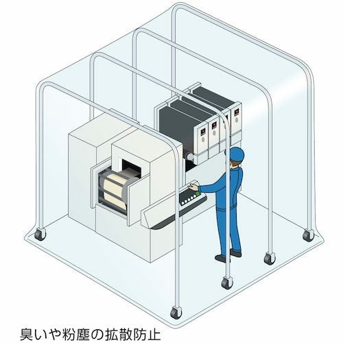- 長期間保管する資材置場のホコリよけとして、また飛散を伴う作業・機械の専用ブースとしてなど、簡単に隔離された空間を作ることができるブースです。