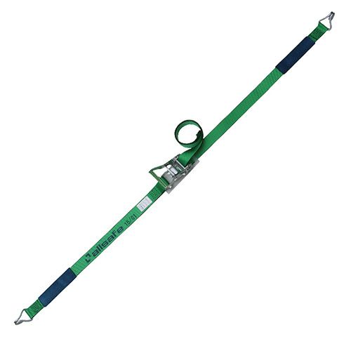 - ラチェット式により簡単な操作で確実な荷締め作業ができるラッシングベルトです。