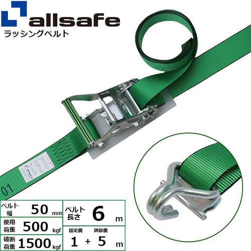 allsafe ラッシングベルト ラチェット式 Tワンピース&ナローフック仕様 (重荷重) 固定1m×調節5m R5TPN15 の特長