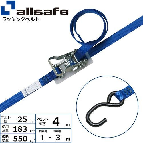 allsafe ラッシングベルト ラチェット式 オープンフック仕様 (軽荷重) 固定1m×調節3m R2OP13 の特長