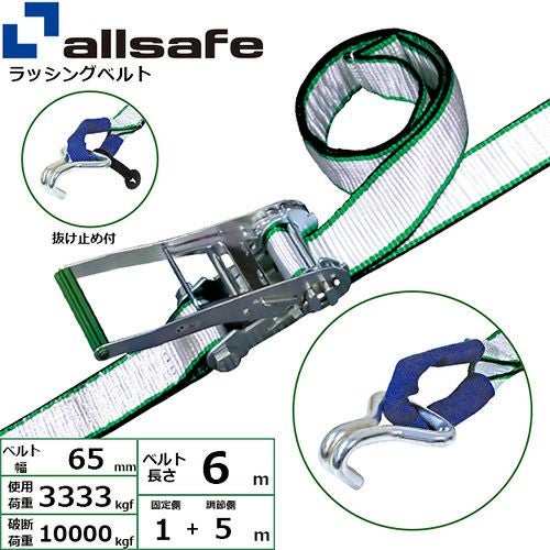 allsafe ラッシングベルト ラチェット式 しぼり&ナローフック仕様 (超重荷重10t) 固定1m×調節5m 白 RN6IN15 の特長
