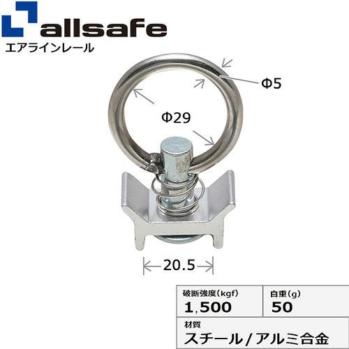 allsafe ロープタイオフ Tワンピース×デルタリング仕様 (トラックレール用先端金具) TP1-DR50