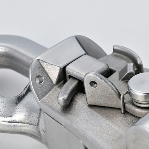 - スナッチフックの外れ防止対策にフック部と本体双方に穴を設置。意図しない解放を防ぎたい場合など、針金等を通して縛ることができます。