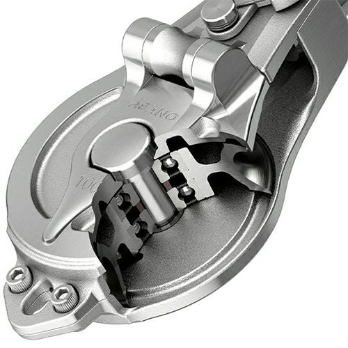 - ダブルシールドベアリングを採用。従来のスナッチタイプの滑車「AKブロックIII-A型スナッチオーフ/スナッチハッカー」のブッシュ式に対し、ベアリング式にすることでシーブ回転時の安定性を向上させています。