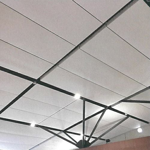 平岡織染 クリアライトロン V-2000-2S 不燃・遮光ターポリン 0.40mm厚 2040mm巾×30m乱巻 ロールタイプ (原反) の特長 屋外使用を想定した間仕切り・パーティション・広告用バナー・膜天井用不燃遮光材料です。帯電防止・シックハウス対策・両面防汚処理仕様。