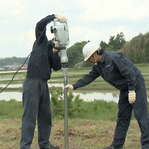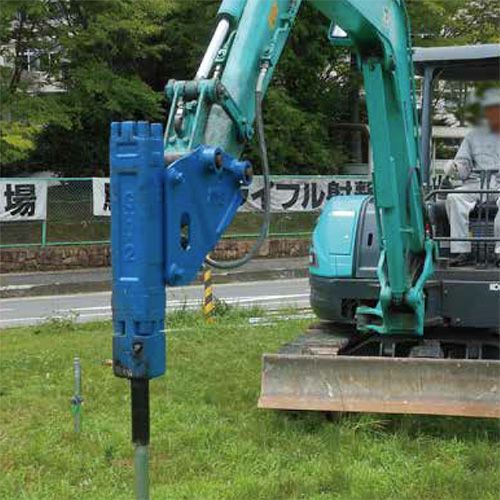 くい丸®は多くのプロユーザから支持されてきた鋼管杭で、アスファルトや固い地盤にも打ち込み可能な施工性と、抜けにくさ(押込み・引抜きの強度が単管パイプの2.5倍)が特徴です。高品質の国内産亜鉛めっき鋼管を使用し、耐久性に優れて、仮囲いやフェンス、太陽光発電基礎にも安心・安全です。施工性・作業性も高く人件コスト削減にも役立ちます。
