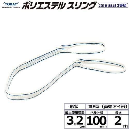 シライ ポリエステルスリング PET3E 両端アイ形 3.2ton 幅100mm 長さ2m