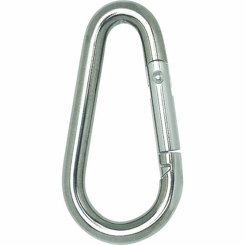TRUSCO 国産カラビナハーケン NS型 ステンレス 8mm×80mm の特長 国内製造の高品質なカラビナです。素手にも優しい滑らかなバレル研磨仕上げです。アルミ合金製に比べて耐摩耗性に優れています。手作業で最終調整をしているので、滑らかな開閉を実現しています。