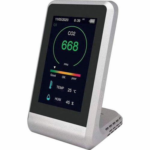 リンクサス CO2マネージャー 二酸化炭素濃度・温度・湿度 リアルタイム監視 の特長 デジタルディスプレイで、二酸化炭素濃度(CO2濃度)、温度、湿度をリアルタイムで監視できます。本器で空気の状態を見える化し、過密状態を把握して換気するタイミングを知ることができます。二酸化炭素濃度(CO2濃度)が高くなると、アラート音でお知らせします。