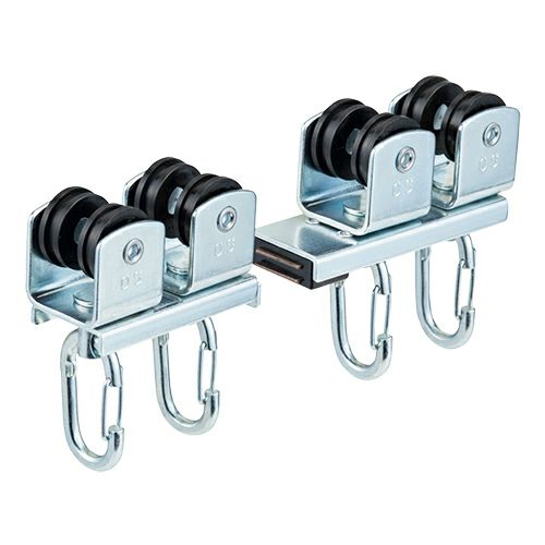 ベンダーワンタッチランナーは、上下左右自由に可動するワンタッチフックを採用しており、ハトメ仕様のシートやカーテンの取り付け・取り外しが容易に行えます。