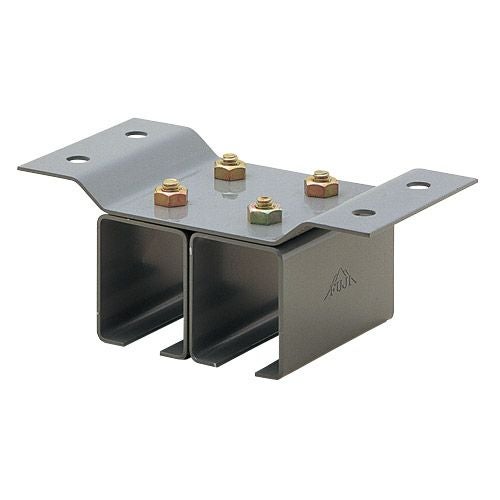 トラックレールを構築物に取付ける受金具で壁面取付用の横受と天井面取付用の天井受の2種があり、共に一連から四連まであります。継受はトラックレールのジョイント部に使用します。