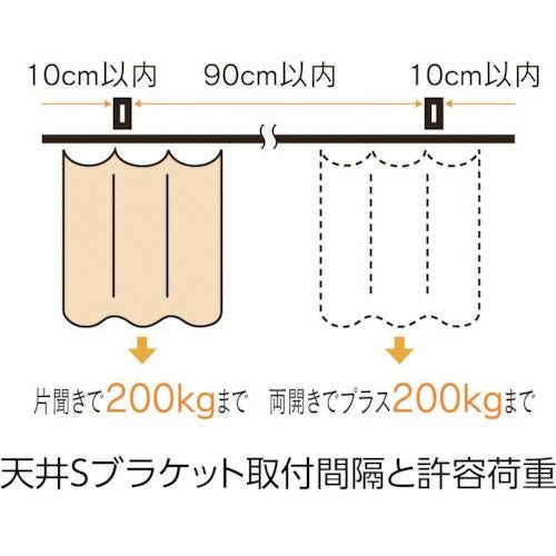 岡田装飾OSエコレールの中でも最高強度を持ち、レールのたわみ量は300kgで3.2mm、許容荷重は200kgを実現しています。