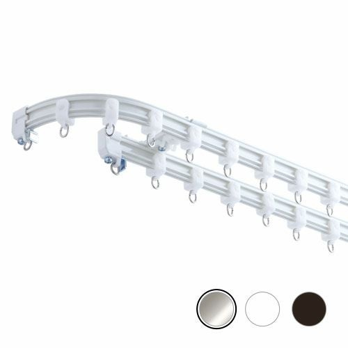 レールカラーはシルバー・ホワイト・アンバーの3色を取り揃えており、インテリアに合わせたコーディネートが可能で、ドレープカーテン両端の光漏れ防止や、出窓の形に沿ったカーテンの取付けができるので、ショーウインドウやディスプレイなどに最適です。