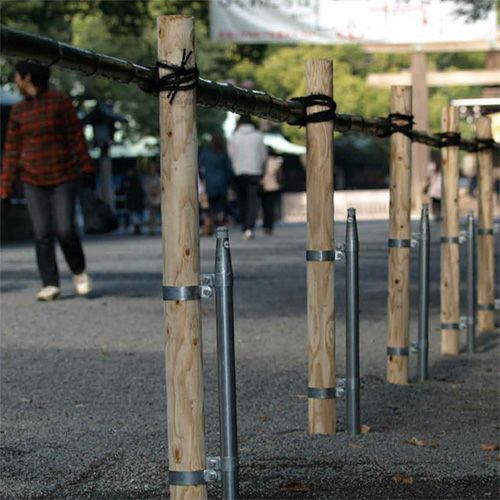 アスファルトや固い地盤にも打ち込み可能な施工性と、抜けにくさ(押込み・引抜きの強度が単管パイプの2.5倍)が特徴です。