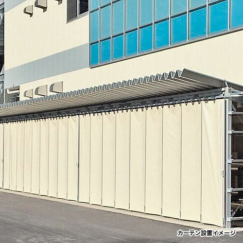 防炎シートカーテン (白防炎・ターポリン) 特注仕様可・幅最大16m/丈最大5m (工場・倉庫・商業施設などで利用可)/セミオーダー品・業務用 の特長