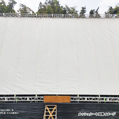 メッシュシートカーテン (防炎1類) 特注仕様可・幅最大17m/丈最大5m (建築養生・仮設資材・防風・防雪)/セミオーダー品・業務用 の特長