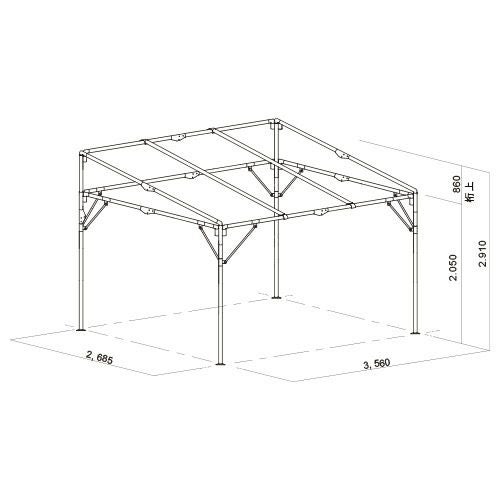 - 片流れテントは屋根の傾斜が一方向のテントで、雨が後ろへ流れるため、受付やイベントに最適です。