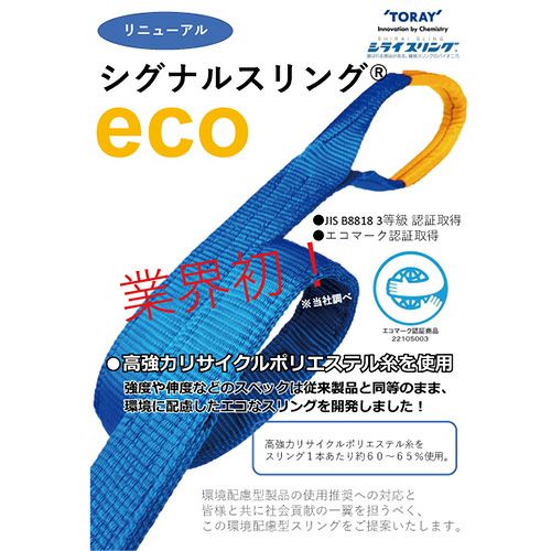 - 高強力リサイクルポリエステル糸を使用した、業界初のecoシグナルスリングです。