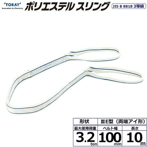 シライ ポリエステルスリング PET3E 両端アイ形 3.2ton 幅100mm 長さ10m の特長