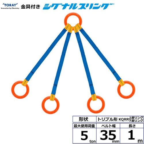 シライ 金具付シグナルスリング KQRR 4点吊 5ton 幅35mm 長さ1m の特長