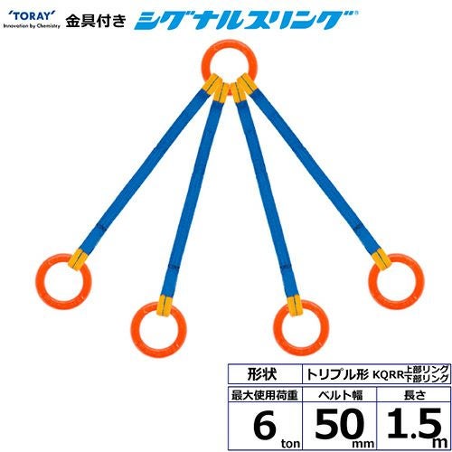 シライ 金具付シグナルスリング KQRR 4点吊 6ton 幅50mm 長さ1.5m の特長